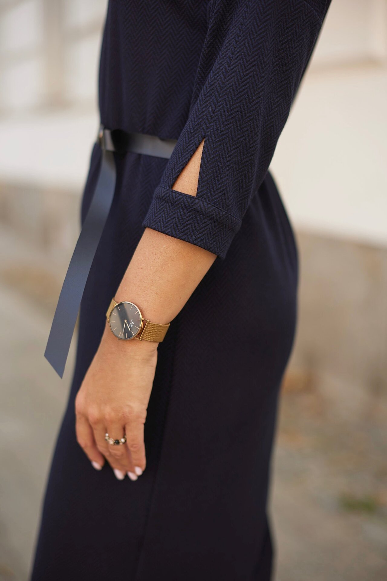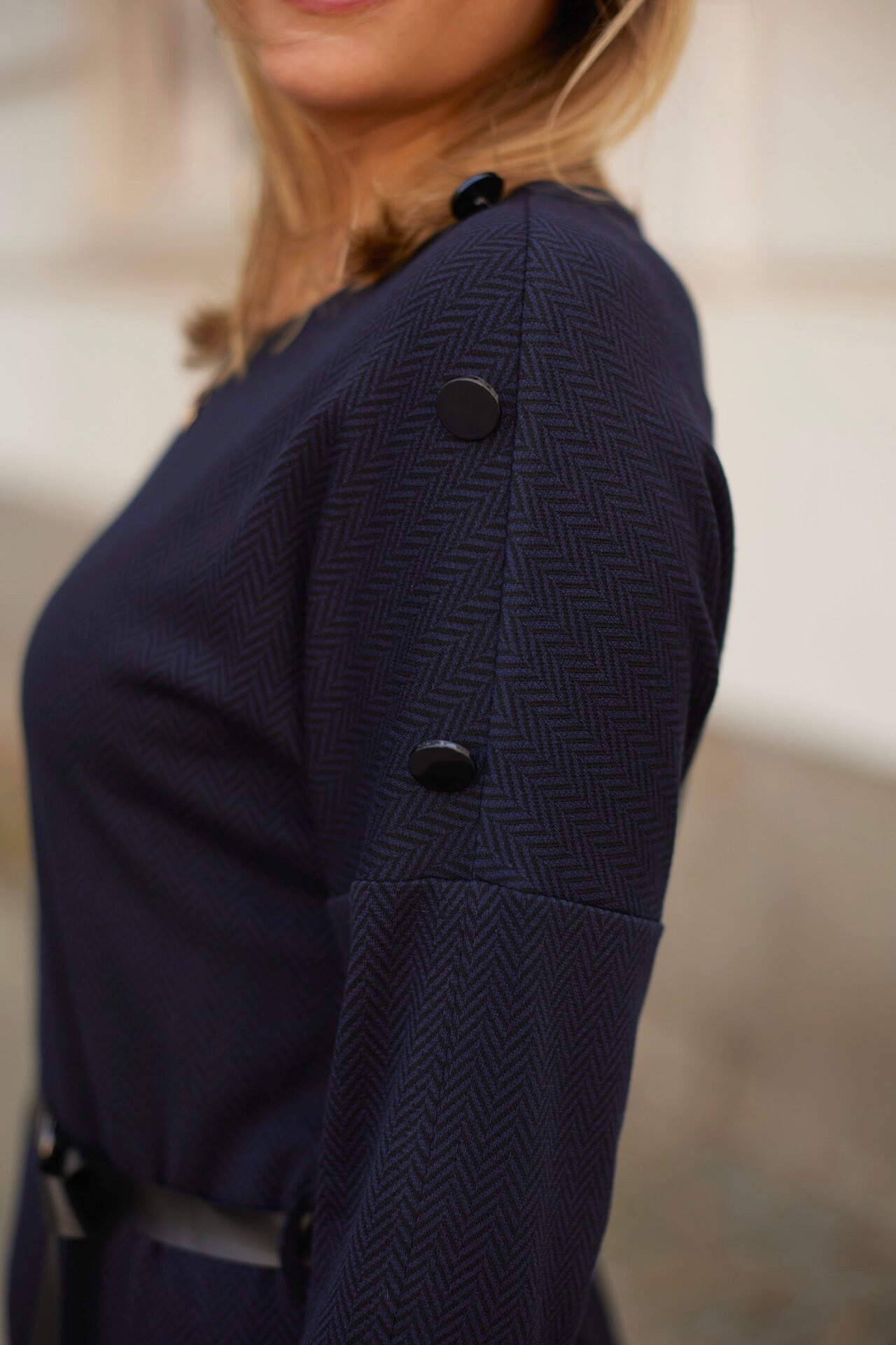 A very feminine and comfortable dress made of jacquard knit fabric with elastane. Designed in accordance with the principles of the LA'AURORA brand - with mature women in mind. Suitable length: 2-3 cm below the knee for a height of approx. 166-168 cm, kimono top with falling sleeves, eco-leather belt to adjust the waist circumference, subdued colors and soft and drapable knitwear, weighing approx. 280 gm2. All this makes the dress perfect for larger sizes.