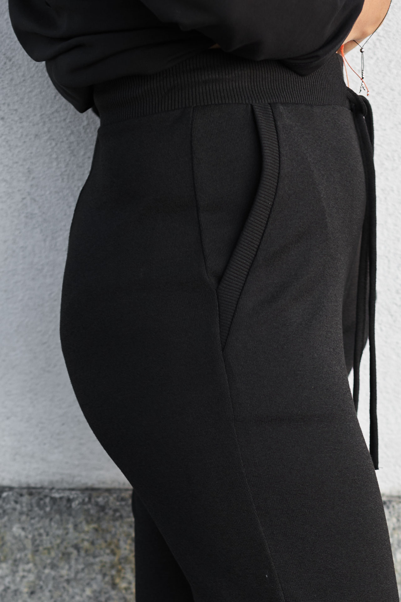 Te wyjątkowe spodnie spełnią oczekiwania każdej kobiety. Uszyte zostały z dzianiny o splocie sweterka. Są przez to uciągliwe a zarazem stabilne. Można nosić je do eleganckich stylizacji ale także na sprtowo.